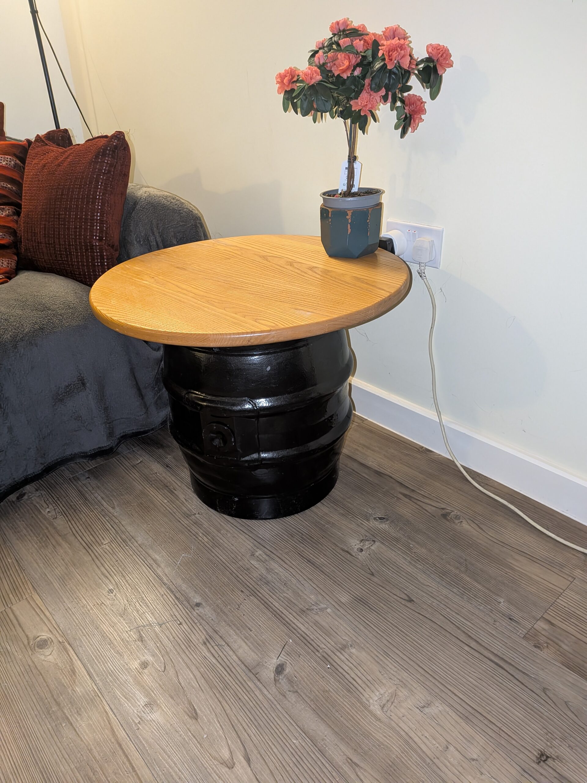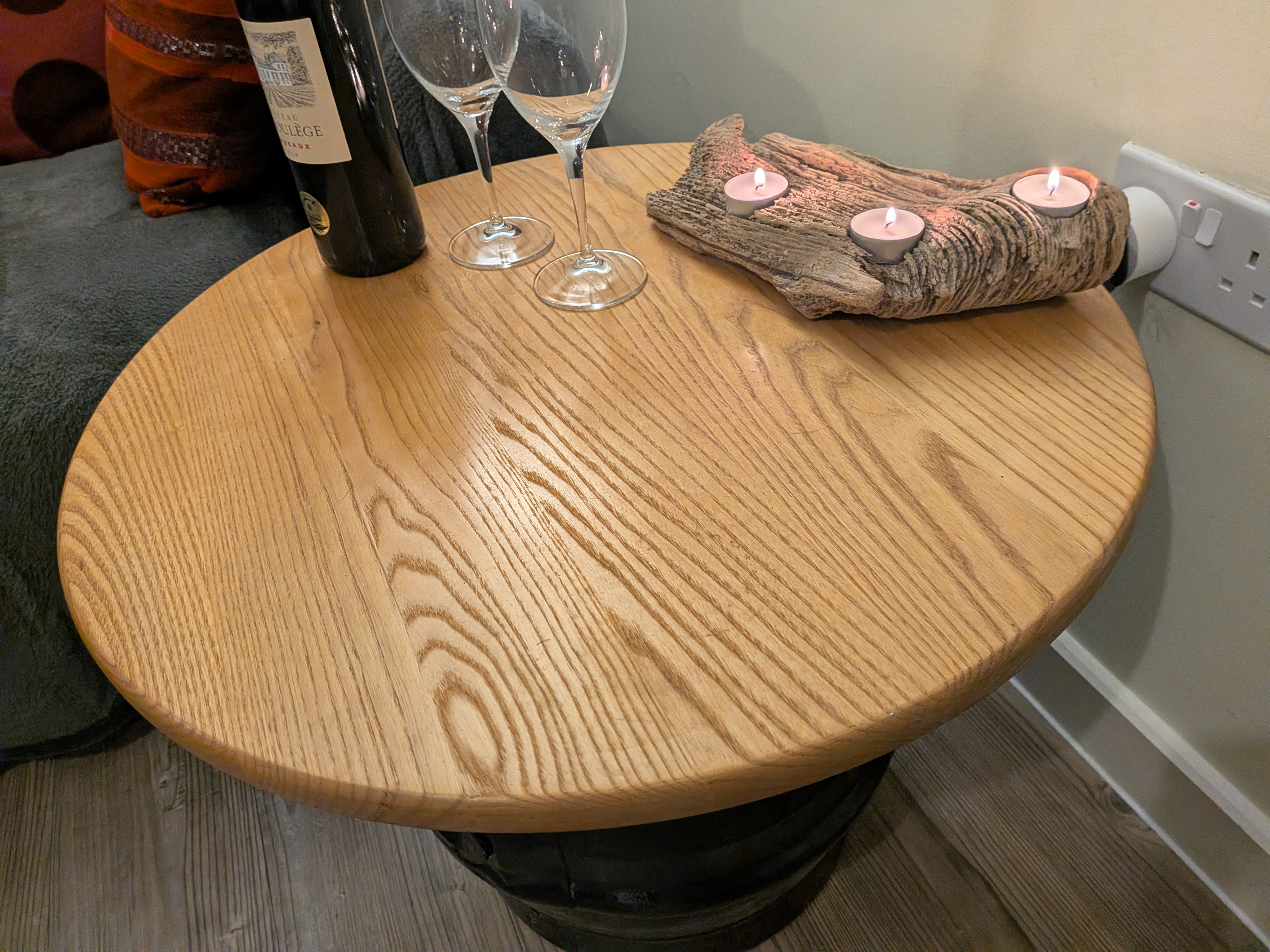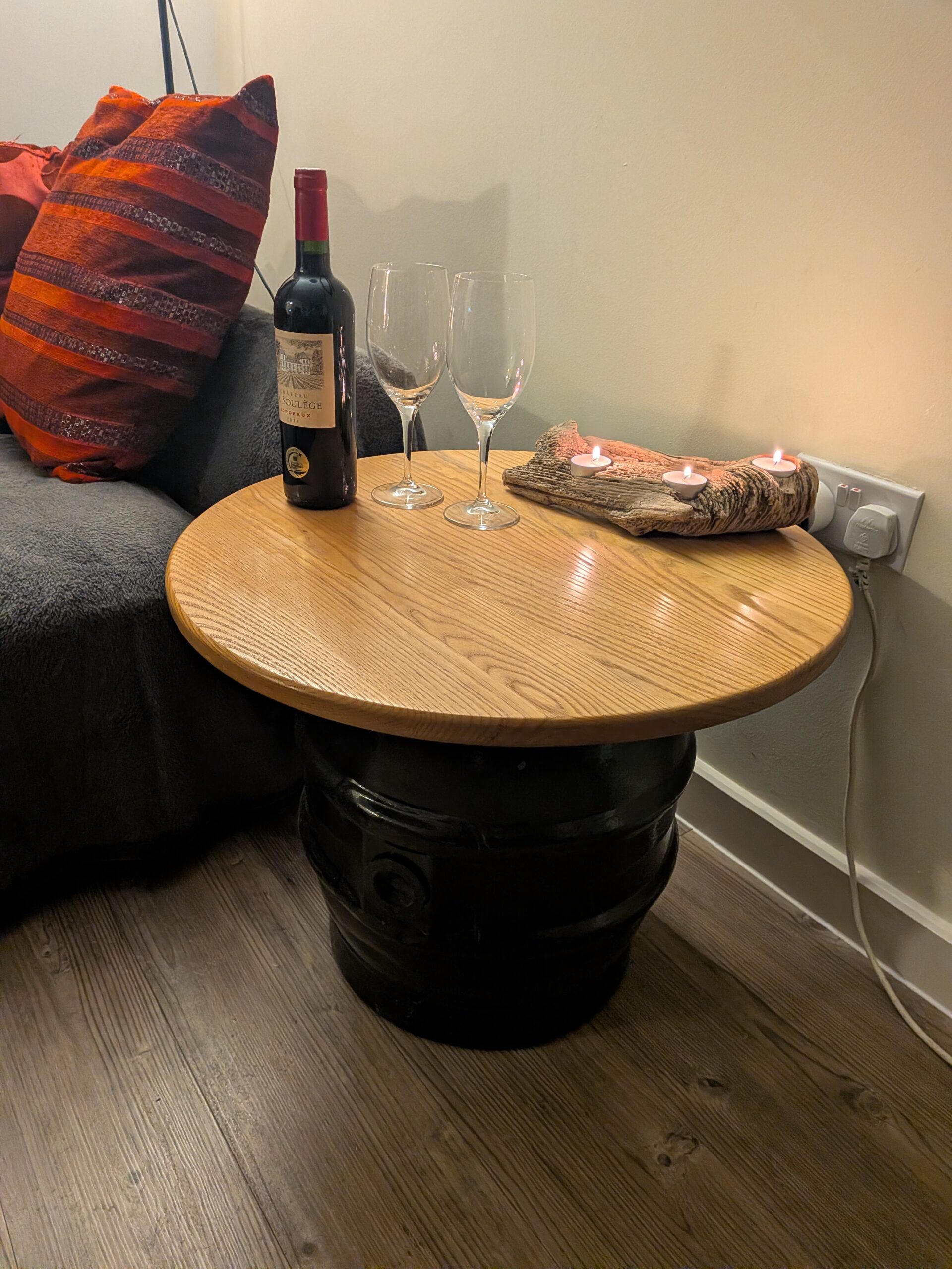 With this one, I painted the base black and used a circular solid oak top for a great contrast. this coffee table has helped to host many great chilled nights, candles and often games of “cards against humanity”