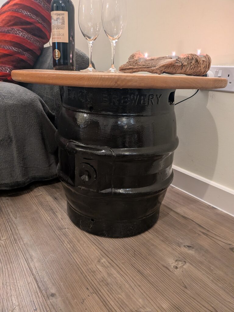 With the second coffee table made from a beer barrel I went with a different style to see what it would come out like